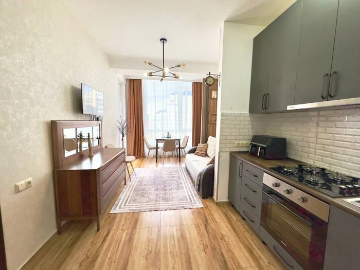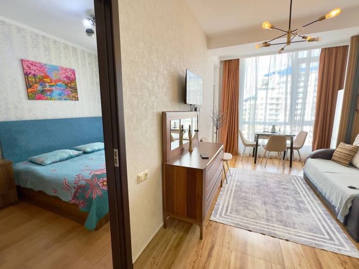 Large studio apartment for rent 📌 Batumi, Pirosmani 16a, Yalcin building, 5-minute walk to the sea, lots of shops and cafes, great location! ✅ High floor, sea view! ✅ Central heating ✅ Fast internet ✅ Air conditioning ✅ 42 sq. m. ✅ Large refrigerator, microwave, gas stove, electric kettle, TV, iron, washing machine, everything you need is included. 🐶🐱 Pets allowed 📌 Rented for a year Payment for the first and 12th months