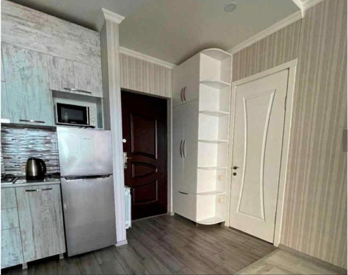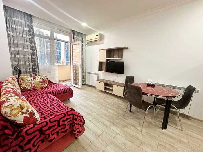 An apartment is for rent in Batumi. Address: 18 Pirosmani Street; Block D of the Real Palace residential complex; 7th floor. (Behind the Orbi complex). Just a two-minute walk to the boulevard and the beach. A comfortable and bright studio-type living space. - The apartment is designed for two people.