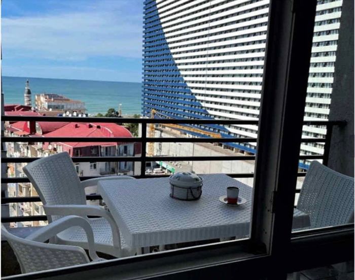 For rent apartment in Batumi with a panoramic sea view in the Yalchini building, Phirosmani Street N16. Floor: 28. Area: 45. Price: $350.