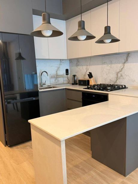 For rent: a newly built, non-standard projet 2-room apartment with an area of 50 sq.m, located on the 11th floor from 31. The apartment has one bedroom, a living room with large windows, a dining area, and a balcony, a dishwasher which provides additional comfort. The interior features blinds, creating a cozy atmosphere. The apartment includes a laundry room and a bathroom, as well as modern furniture and decorative elements. The bedroom is bright and equipped with a comfortable bed. Here you can feel peace and a modern lifestyle in one space.