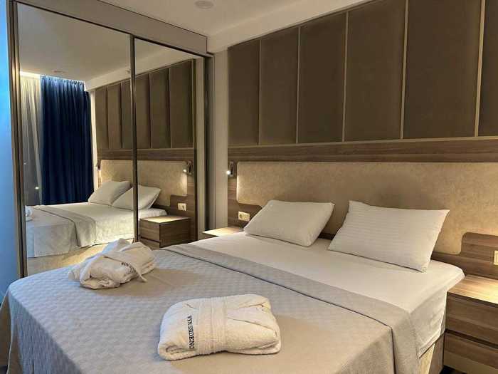 I am the owner! Newly built 3-room apartment (2 bedrooms) for rent in Batumi. It is a very cozy and comfortable environment. We have a yard where you and your children can relax, the apartment has a bathroom, kitchen, air conditioner, washing machine, refrigerator, TV, wireless Internet and other necessary equipment. It is located in the vicinity of New Boulevard. Near the sea and the new boulevard, 700 meters away. Angis 1st Lane #61.