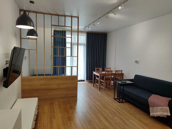 Apartment for rent at 16 Pirosmani Street, 2 rooms with 1 separate bathroom, central heating, high quality wooden furniture and appliances. Price 650$ +995 555 90 44 39 WhatsApp Telegram