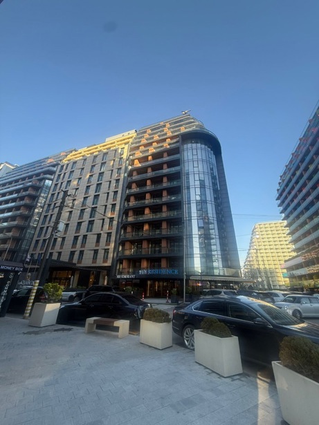 For sale urgently, a studio-type apartment in the hotel "LA QUINTA BY WYNDHAM" located 100 meters from the sea. Renovation work in the apartment has been completed with the highest quality materials, Spanish tiles, Italian laminate, and the kitchen, bar, and countertop are made of artificial stone "Corian". Underground parking is also provided for residents.
