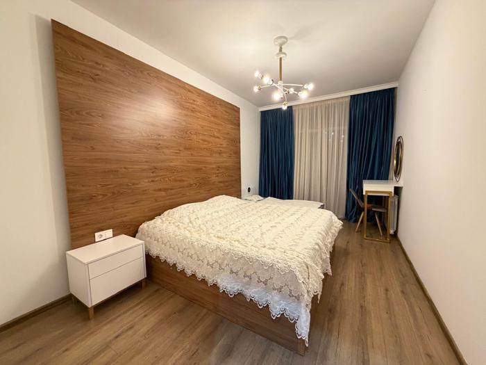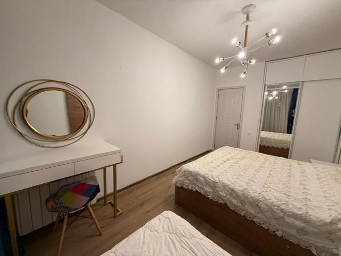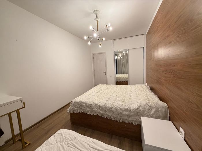 For rent in a newly built premium building NBG PANORAMA an unoccupied 3-room apartment with 2 bedrooms. Furniture and equipment are included, there is a reception, video surveillance, and security 24/7 in the building. 4 passenger and 1 freight elevators. Yard parking and children's playground. 24-hour spar market.
