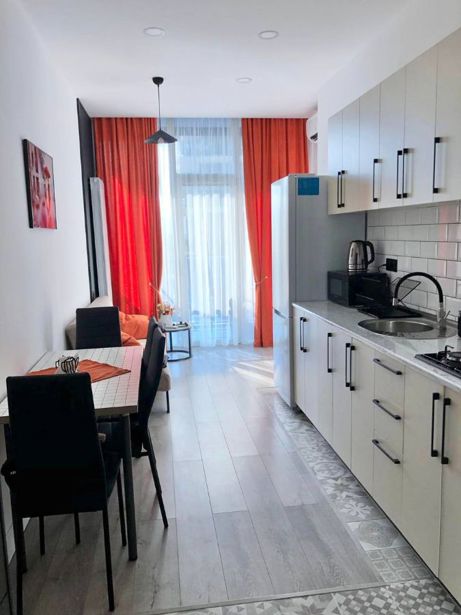 Apartment for rent, cozy, best and quiet environment. In an elite and secure location, with private parking!! Gas! Chip-enabled and secured entrance, best location on the new boulevard, just a 5-minute walk from the sea, with a location of 200 m!!! Next to the Orbi at the end of Khimshvili street.. Studio for rent 2+1 for guests "Alpha Residence" second block of the "Salami" residence, with beautiful mountain views., free use of the elevator. Fully equipped with appliances and complete kitchen inventory (wi-fi, silknet, smart large TV, air conditioning, safe, washing machine, central heating, (which is important in winter) microwave,
