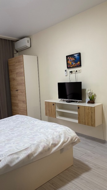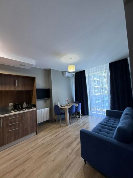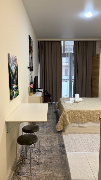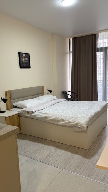 A studio is for rent. Cozy, best and quiet environment. In an elite and secure location, with its own parking!! With gas!! A chip-keyed and secure entrance, the best location on New Boulevard, 200 m from the sea, a 5-minute walk!!! At the end of Khimshiashvili Street next to Orbi... Studio for rent for 2+1 guests at "Alpha Residence". The second block of "Salami" residence, with beautiful mountain views. Elevator use is free. Fully equipped with appliances and a complete kitchen inventory (wi-fi, silknet, smart large TV, air conditioning, safe, washing machine, central heating, (which is important during winter), microwave, induction stove, fan, dishes, 2 very comfortable king-size beds, and a pull-out couch, protection from mosquitoes, every detail is accounted for, a rather cozy and compact apartment. There is a large shopping center Metro City near the residential complex, supermarkets: Nikora, Goodwill, Carrefour, Daily, Billion, fitness center, swimming pool, beauty salon, dining establishments, public transport stop, all within 50m distance. On the territory of the building, Nikora 24/7 is located. 2 elevators. 24/7 security, reception. You will feel at home. The price is $350 from May and September, pets not allowed, I cooperate with agencies. Do not copy and upload to this site, you will be blocked. Renting for 2 or 3 months is possible.