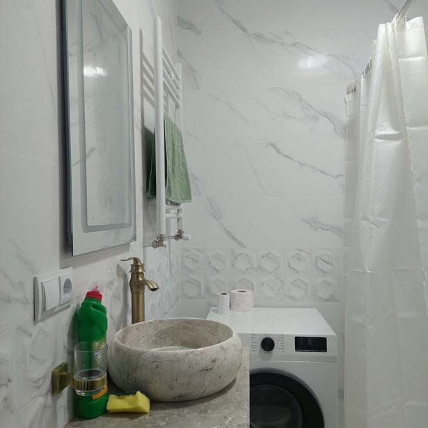An uninhabited apartment is for rent with the latest renovation at 18/20 Ketevan Tsamebuli Street, near the Baus clinic, located on the 5th floor of a 9-story building. It has central heating, all necessary furniture and appliances, gas is available. It is available for rent for 6 months or for one year, 1+1. The owner will install a dishwasher and a shower cabin in the bathroom in the coming days.