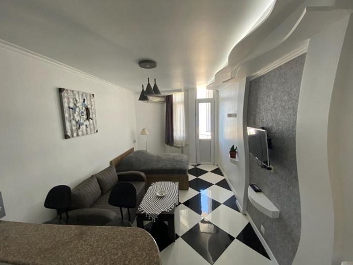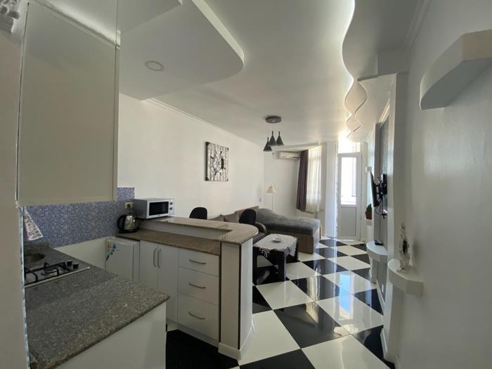 Studio-type apartment for rent monthly and yearly until the season, with a sea view of 30 square meters, newly renovated, central heating, with all kinds of comfort. Advance payment for two months. Price is $350. In the season, the amount is $400..