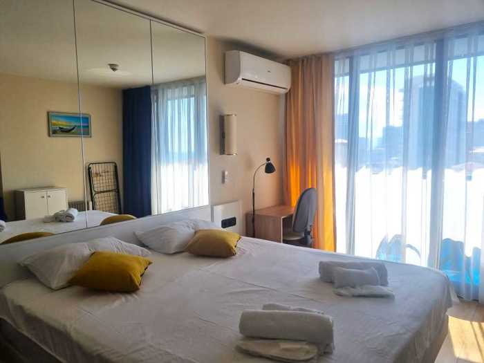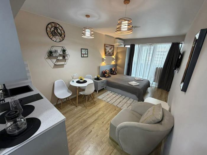 A clean, well-organized beautiful apartment is for rent daily or monthly on Khimshiashvili Street with a sea view, from the owner in Orbi Towers, first line, 50 meters from the sea. The apartment is furnished and designed for 2-3 people, has all kinds of household appliances and first hygiene supplies. The price is $300 for monthly rent.