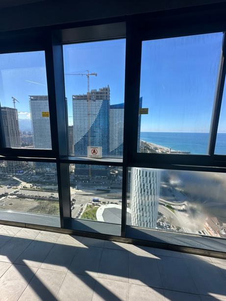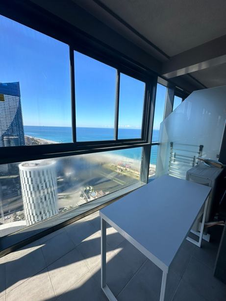 For rent for a long time.term spacious studio of 38 m2, overlooking the boulevard, the mountains, the sea. Address: "BEACH TOWER" Sheriff Khimshiashvili 57 (first line, new boulevard), 🌊Floor: 34 , 🌊Heating: Air conditioning,electric heater, 🌊Balcony, 🌊Reception, 300 $ (payment for 2 months),