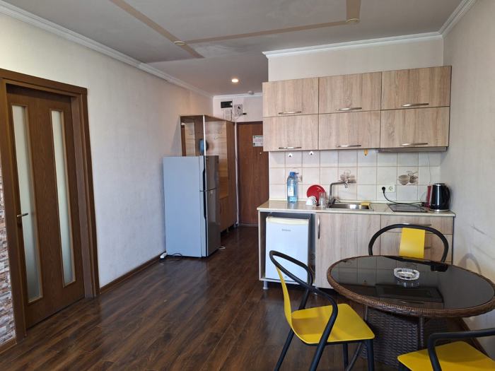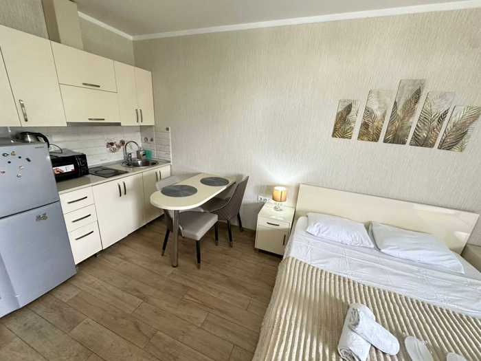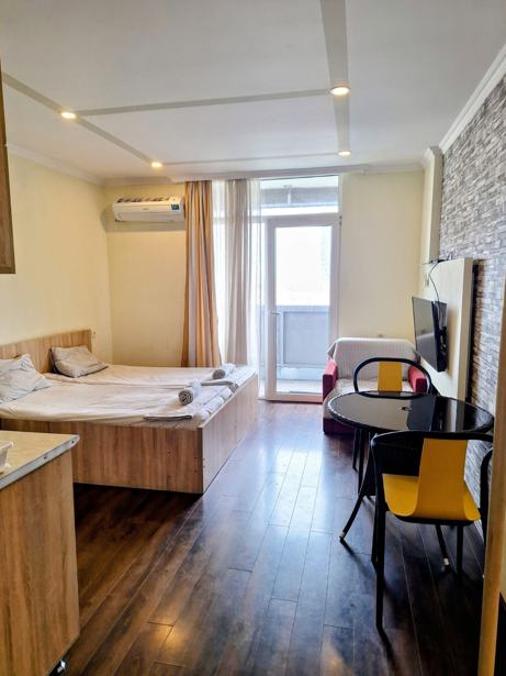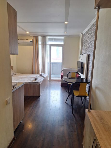 A studio apartment for rent in Aparthotel Apartments Terrace & Bar 21 next to Grand Mall (across the street) in Batumi with a sea view and a balcony. The apartment is newly renovated and equipped with furniture and equipment and all necessary accessories. Balcony is open with sea view, large stained glass window from the hall with sea view. 200 meters from the new boulevard of Batumi and the beach. in the center of town. Around with all necessary infrastructure: shopping center Grand Mall, swimming pool and fitness club, markets, currency exchange points, beauty salons, cafes, restaurants, etc. The building is newly built. The apartment is on the 22nd floor. 35 m2. The entrance is closed and cleaned with security cameras in public spaces. There are 2 elevators, passenger and freight. With a closed parking lot in the yard and a parking place. Address: Kobaladze 8a. Price $350. Mob: 595 79 66 55