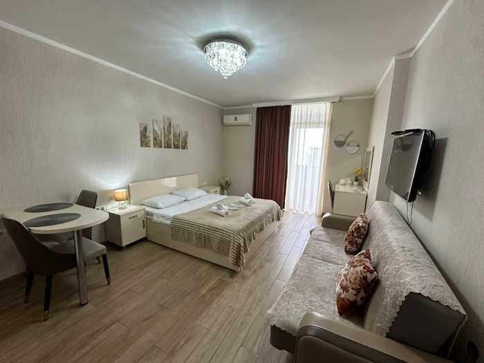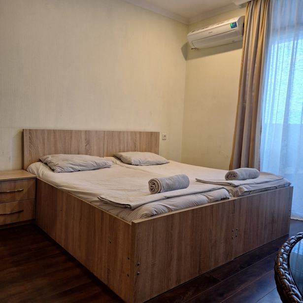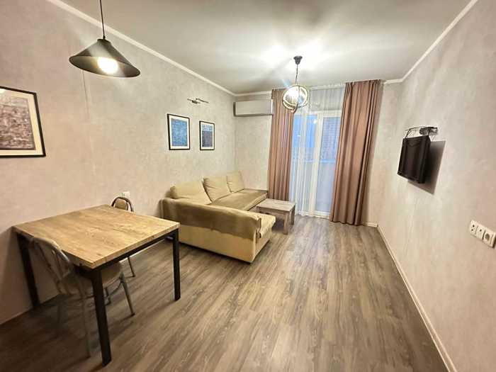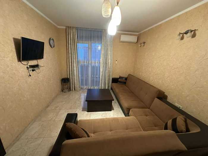 Available from March 9, 10 Shartava, 9th floor - 55 sq. m. New Wave is a newly organized premium class building with a pharmacy, market, sea, everything is almost in the yard, the building has its own swimming pool, restaurant, beauty salon, market, and gym, with 1 bedroom, spacious, double bed and sofa bed, central heating, air conditioning, dishes, etc. everything is in the apartment before reaching the dishwasher, the view from the balcony overlooks the yard and pool, it is a clean, Euro-renovated, comfortable, and bright apartment, available for 1 to 2 people, no pets.
