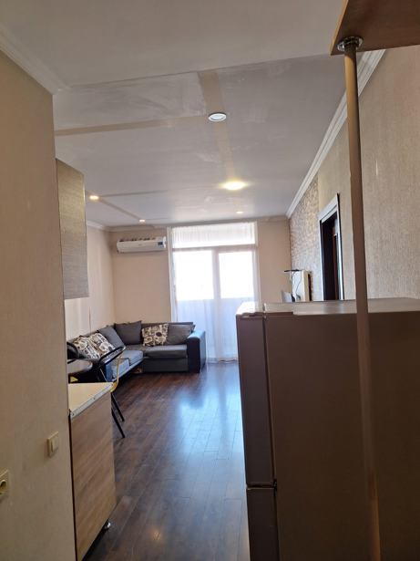 A studio-type apartment is for rent directly across from Grand Mall. Address: Kobaladze St. 2, Orby Plaza. Area: 33 m², 10th floor. The apartment is equipped with everything necessary for living. Price: $350 per month, in case of renting for one year.