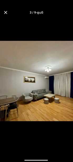 For rent: 3-room apartment on Abuseridze #21 2 bright bedrooms Separate living room Separate kitchen No balcony 90 sq.m. Heating: Karm. Price: 1200 GEL.