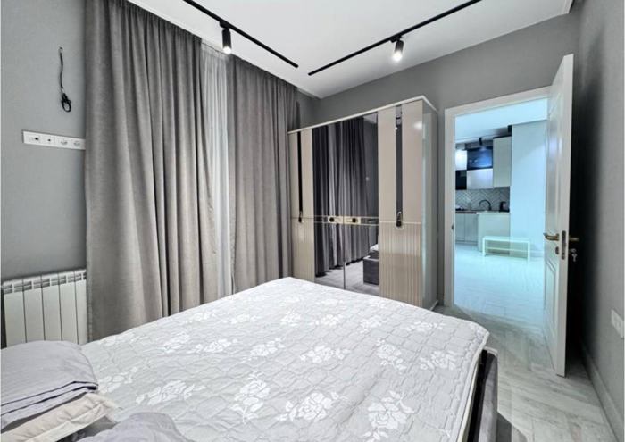 An apartment is for rent in a newly built building, on the 9th floor of a 15-story building. The total area of the apartment is 60 sq.m and includes 2 rooms, one of which is a bedroom. The apartment has one balcony that adds extra comfort and coziness. The non-standard project and new environment provide a modern and cozy living space. The apartment is ideal for those who appreciate tranquility and living in a new environment. Here you can feel the rhythm of the city while enjoying personal space at the same time. The apartment is for rent for one year with two months' advance payment.