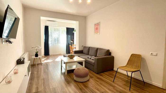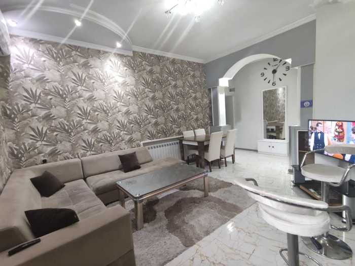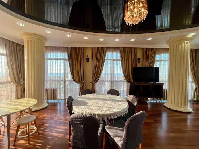 For rent is a 4-room, newly renovated, bright and comfortable apartment in the city center, 200 meters from the sea. The apartment has three bedrooms, three bathrooms, and 7 French balconies. The apartment is rented for a minimum of 12 months and is ready for immediate move-in.