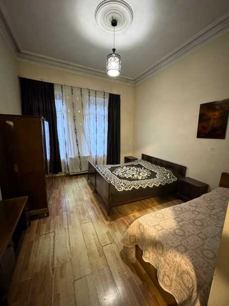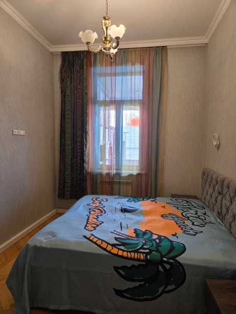 An 85 sq m apartment is for rent on the third floor, Vazha-Pshavela Street 45, Batumi. The apartment is equipped with all necessary appliances and furniture.