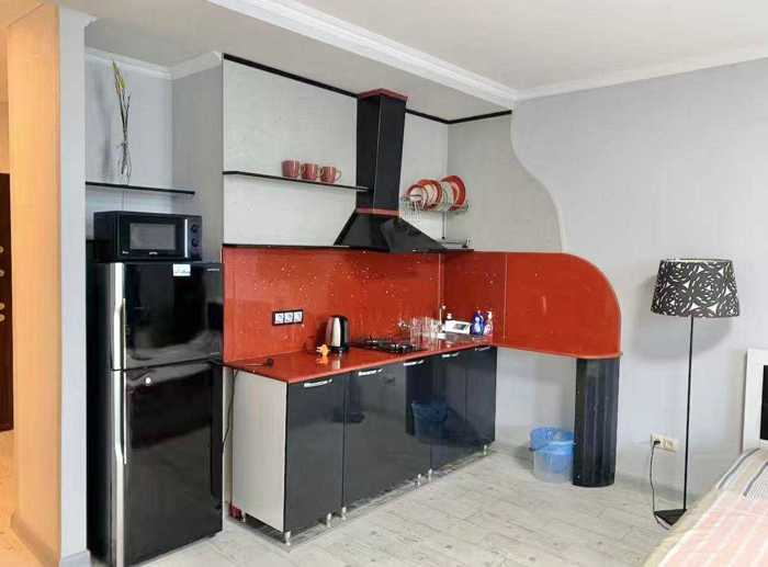 For rent in Batumi on Pirosmani Street, 45 sq. m. in a newly built building, on the 7th floor, a two-room apartment with one bedroom. Renovated, furnished, with appliances, central heating. (50 dollars will be added for the three summer months) Price: 350 dollars.