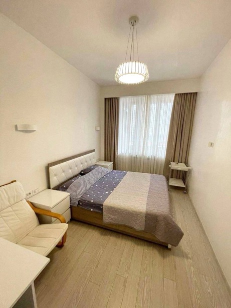 For rent is a newly built, modern apartment with an area of 84 square meters, located on the 24th floor out of 38. The apartment has one bedroom and two rooms, providing a comfortable and cozy environment. The apartment has two balconies offering stunning views of the city. The new building ensures security and tranquility. The apartment is ideal for those who appreciate living at a height and modern infrastructure. Here you can feel the pulse of the city and enjoy a cozy atmosphere.