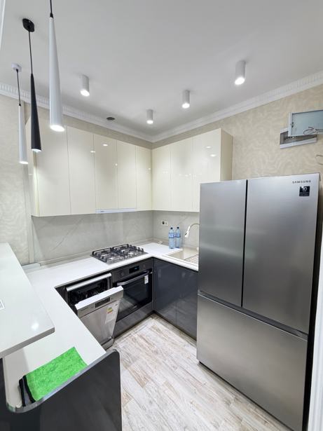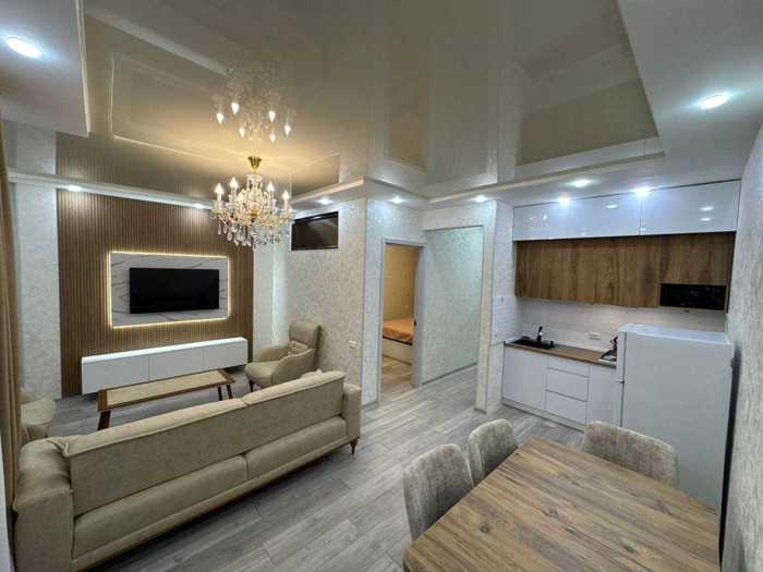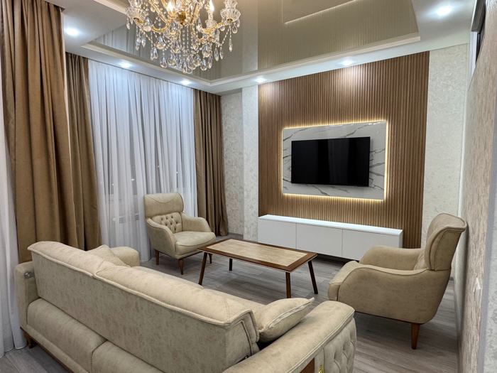The building is newly constructed, has three elevators and parking, the apartment is renovated and furnished with all necessary furniture and appliances, available for rent both short-term and long-term. 1 large living room, 2 bright bedrooms, separate kitchen, 2 bathrooms, 2 balconies.
