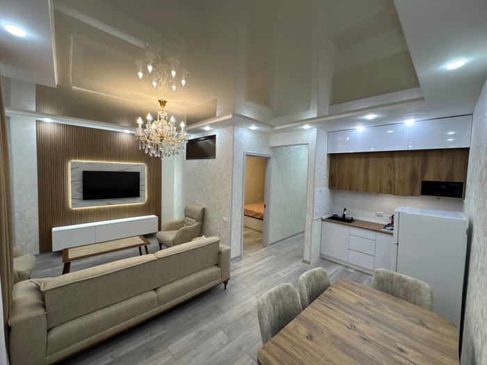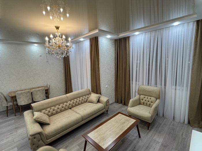 A luxury apartment is for rent in Batumi at BAGRATIONI RESIDENCE, with a view of the stadium and the promenade. The apartment is newly built and renovated, uninhabited, with high-quality renovation and furniture, fully equipped with all necessary amenities. I am the owner. 555001716 574120310