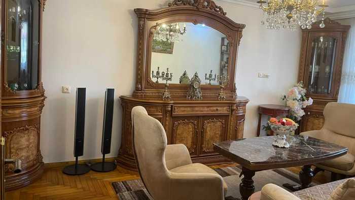 Urgently for rent, on the corner of Takaishvili street, near the zoo, 4-room premium class apartment, 2 bathrooms, 3 bright bedrooms, new furniture and appliances, central heating and air conditioners.