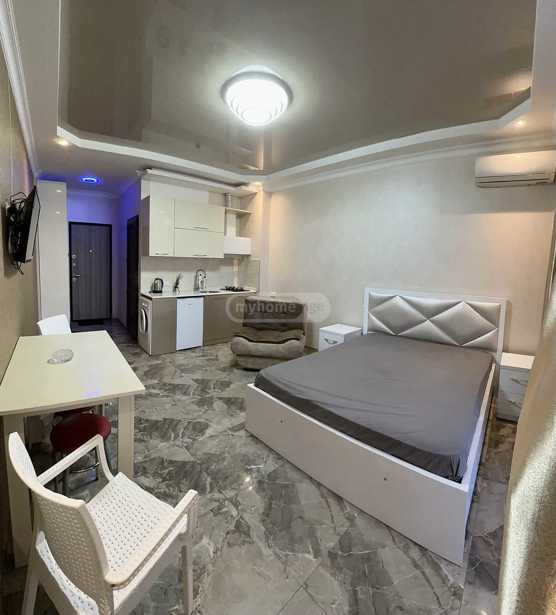 For rent immediately near the stadium on Bagrationi, in the Dome complex, a large studio-type premium apartment: - 35 m2 - high floor - fast elevators - underground parking - new renovation - good sound insulation - heating gas boiler + floor heating, hot water - air conditioning (cooling / heating modes) - kitchen: gas stove (4 burners), oven, dishes. - large table and 2 chairs - large refrigerator - comfortable double bed + linen, blanket and towel. - large wardrobe with mirrors, chest of drawers - TV - Internet - washing machine - the balcony offers a view of the sea, the old city and the Alley of Heroes. PS The price will not change during the season