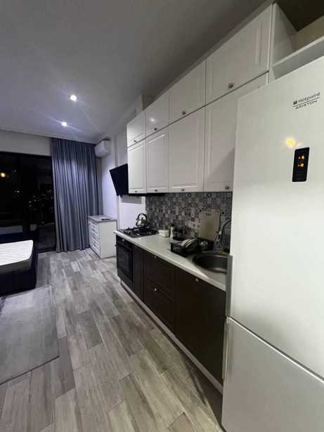 For rent: a two-room apartment in Batumi, with one bedroom. Newly renovated, with all necessary furnishings and appliances, central heating.
