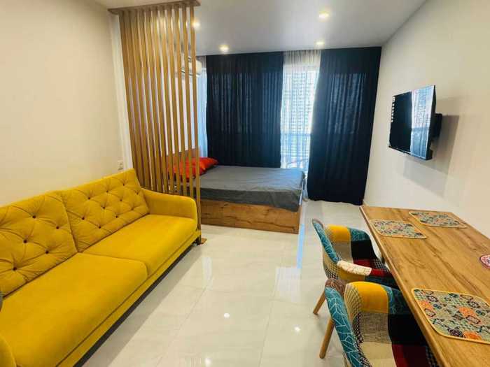 premium 1+1 apartment in the DS Mall complex, Tbel Abuseridze Street, 5A - 15th floor, 60 sq.m. - Designer renovation ☀️ - Lots of lighting with different temperatures ☀️ - Remote-controlled roller blinds ☀️ - Dishwasher ☀️ - Microwave ☀️ - Oven ☀️ - Wi-Fi, 2 TVs ☀️ - Air conditioning - Central heating - Hygienic shower - Dishes, linens - Small pets allowed (with a deposit) - Large balcony with city views, south-facing - Apartment available! 7-minute walk to the sea.