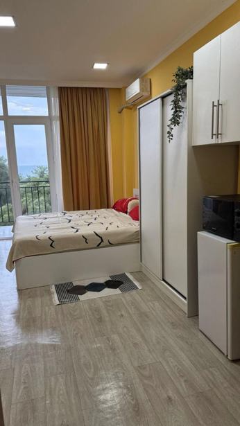 A cozy studio is for rent in Makhinjauri, in a modern next green complex, with a sea view from the high 8th floor, a strong lobby on the first floor for meetings, 24/7 reception, a quiet, peaceful place with an outdoor pool in the summer season. The studio has everything you need for a comfortable stay. Long-term rentals are possible, as well as for a short stay (minimum one month).