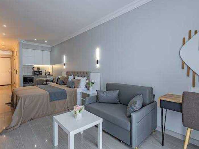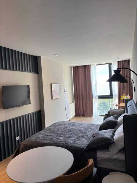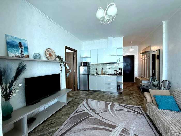 For rent: a beautiful studio-type apartment in Next Apartments, with central heating, stunning sea views, a built-in kitchen, an oven, new living room furniture and appliances, and there is a lot of storage space in the apartment, excellent location, absolutely everything around for a comfortable life, available for annual rent.
