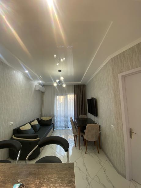 For rent: an apartment in a newly built building. It is well arranged in every way. Newly renovated. With central heating. With air conditioning, furniture, and appliances. Address: Kutaisi, Mikheil Bukhaidze St. N 4v. Payment in advance for 2 months.