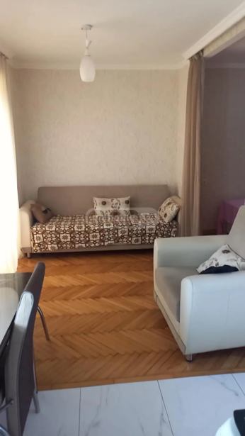 Cozy and bright 2-room apartment for rent in the center of Kutaisi. Fully furnished, newly renovated in one of the city's most prestigious areas next to the Meskhishvili Theater. • Rooms: 2 bedrooms + studio type living room and kitchen • Balcony • Central heating/air conditioning • All necessary appliances (refrigerator, washing machine, TV) • High-speed internet With a view of the Bagrati Cathedral A supermarket, pharmacy, kindergarten, and public transport stop are located near the building. If interested, please contact us.