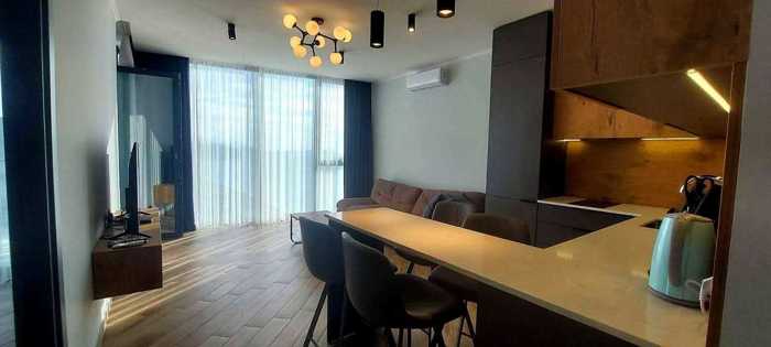 An apartment for rent in Kobuleti in a newly built building, the apartment is newly renovated with new equipment, new furniture, everything is new, the price of the apartment is $650, long term, short term is $700, the apartment is located behind the market.