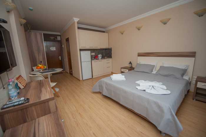Apartments with sea and mountain views are for rent in Gonio. The building has 4 elevators, a large and children's pool, security, cleaning service, and free parking. The apartment has a fold-out sofa. I am the owner.