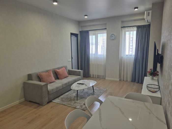 For rent is an uninhabited, newly built apartment with the highest quality renovations. Next to the bakery, Digomi Massif, 6th Quarter, 15b.