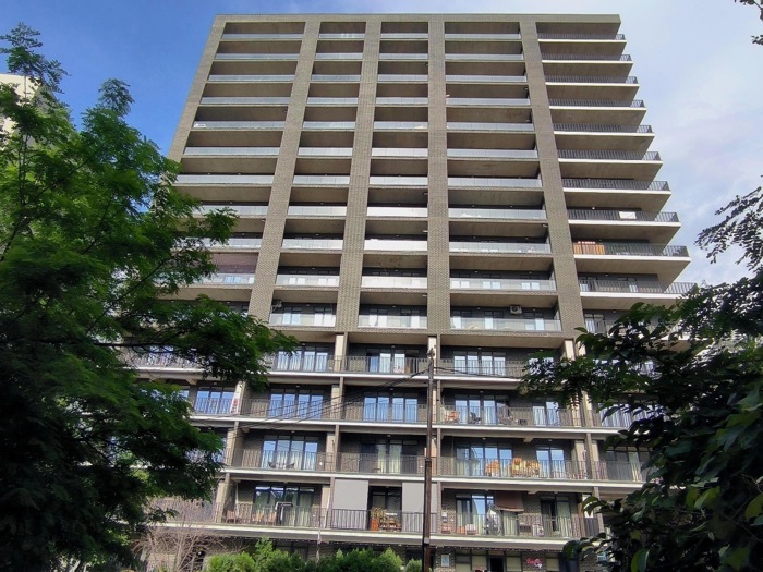 Urgently for sale a bright, beautiful 4-room corner apartment. On the 11th floor of a newly built 12-story building. On Merchkhlavashvili Street, 10 minutes from the metro. Beautiful views from every room, panoramic windows, balcony, built-in appliances and furniture, 3 bedrooms, all with natural light, a dressing room, separate kitchen, air conditioning, central heating. High-quality materials used for the renovation.