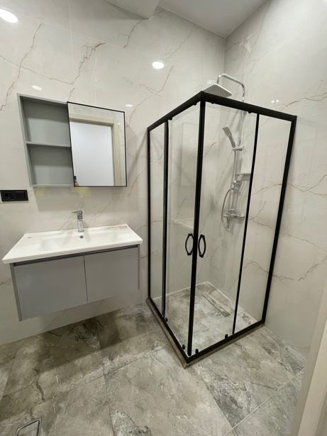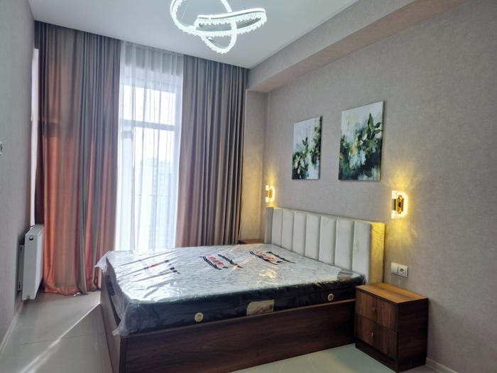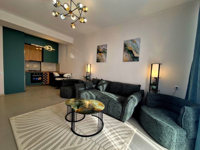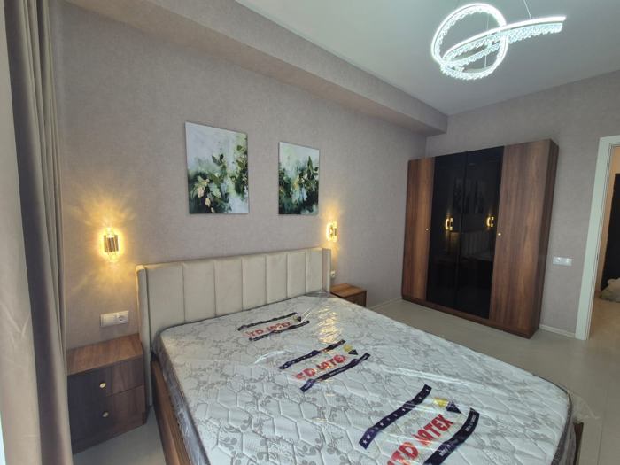 For sale: newly built apartment in a delivered building (sole). The apartment is newly renovated with premium quality materials. Furnished, with appliances. The building has 2 entrances and 2 elevators. Equipped with fire safety systems. With cameras. 100 parking spaces are allocated for residents + underground parking.