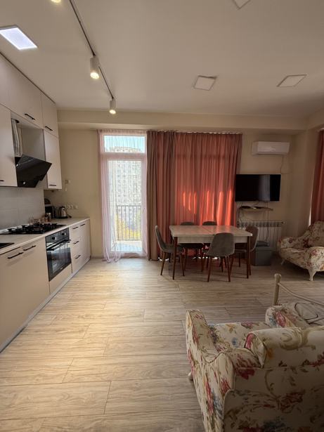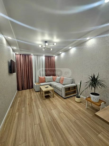 For sale is a newly renovated, uninhabited apartment in the most sought-after building at the entrance to Rustavi, where rent and apartment prices are much higher compared to other buildings. The best materials have been used, and it is furnished with custom-made furniture and equipped with official Beko appliances. 65m² with the best view and cozy environment, price is $1500 per m², which totals $97,500, I am the owner.