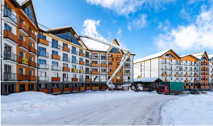 For sale in the Redko complex of Gudauri, specifically in 'Twins Redko', a 45.50 square meter apartment in white framework condition. The complex is built around ski slopes and lifts, against the backdrop of the increasing number of international visitors (more than half a million visitors) and the significant development of the resort. Owning an apartment from Redko in New Gudauri means making a long-term, profitable investment. The complex includes a restaurant, concierge service, and security service 24/7. The apartment is valued at 61,000 USD by the Bank of Georgia. For sale below market value.