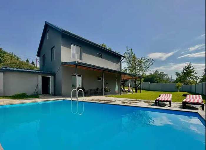 🏡 A new built house is for sale in Saguramo, Shenkevani! ✨ Renovated, with modern design and exquisite details 🛏 4 bedrooms (1 master bedroom) 🔥 Fireplace – for a cozy atmosphere 🏊 Outdoor pool (3/7) 🚿 3 wet rooms 🌿 Beautiful veranda and a large yard with handmade ornaments 🍖 The yard is equipped with a barbecue for entertainment ❄️ Air conditioner 📦 Storage/closet 🪜 Indoor staircase – handmade, with a unique design 📍 The house is located in a prestigious and quiet neighborhood – perfect for family living. 💰 Price: $420,000