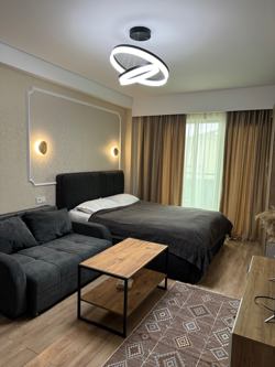 In Bakuriani, near the Didveli ski lift, studio-type apartments with kitchen corners and balconies are for sale in the hotel-type residential complex "Didveli Gallery". The apartments are renovated and furnished with furniture and appliances. Central heating/hot water/drinking water, internet/TV are installed. There is an open terrace with panoramic views on the top floor of the hotel. The hotel has a restaurant, closed parking, and a 24/7 concierge, security, and cleaning service. Considering the location of the hotel, this real estate is ideal for both living and renting.