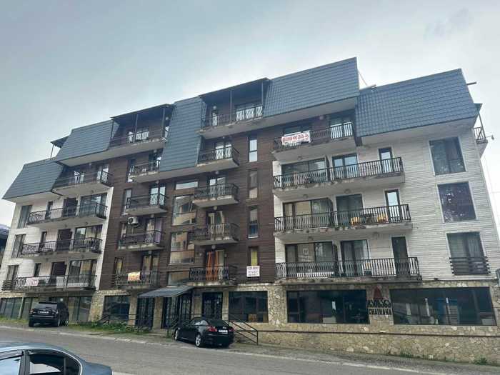 For sale is a 57 sq.m. residential apartment on the 5th floor in Bakuriani Plaza, with 1 isolated bedroom, 1 bathroom, a studio-type living space, and a large terrace. The apartment is sunny, warm, and cozy. All types of utilities are connected. The building is located on Bakuriani Street, has administration, yard parking, a children's area, etc. The ski slope is a 5-minute walk from the 25-tion. S/C 64.10.08.078.02.04.507