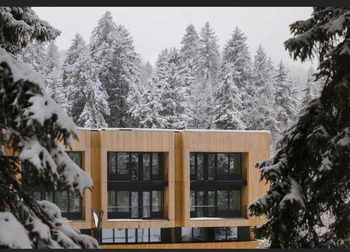 In Bakuriani, a 41.6 sq.m apartment (black frame) is for sale on the 2nd floor of the newly built building of company Xoris. Address: Kobis Tsakhadze 100, building 2