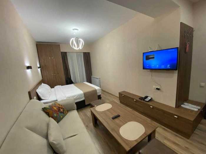 Studio apartment for sale in Bakuriani – in the travelers' building! It is an ideal option for both investment and personal vacation! Studio type – accommodates 2+2 persons located on the first floor has a balcony fully furnished with furniture, appliances, and necessary inventory – sold with everything! For more detailed information, please contact me Address: Liana Gogoladze N21