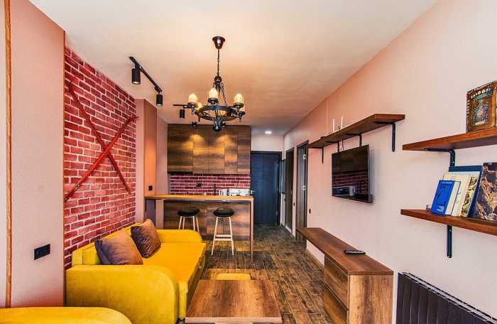 Urgently! For sale in Bakuriani, on Agmashenebeli Street, in Hotel Haistek, on the 1st (5th) floor. 2-room renovated apartment of 47 sq. m. With furniture and appliances.