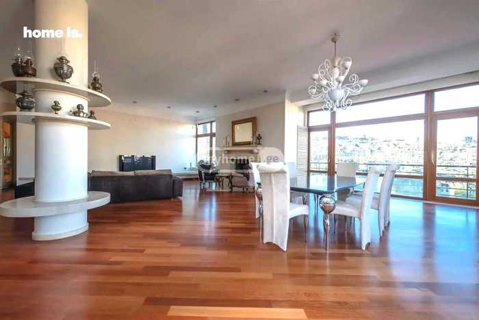 Sairme Hills is the most prestigious place in Saburtalo. Located on an elevation, you will find yourself surrounded by private residences, just a few minutes' drive from the park, yet still in the city center. In a five-story clubhouse, we offer an elegant 735 m² penthouse with huge terraces that provide panoramic views of the city, park, and mountains. The 410 m² interior comprises: a beautiful living room with a fireplace, a winter garden and kitchen, 5 bedrooms, bathrooms, a dressing room, and a laundry room. The 325 m² summer area consists of wrapping balconies and terraces, as well as a unique rooftop terrace with a pool - beautiful and comfortable. This penthouse in Sairme Hills is an ideal solution for those seeking comfort, tranquility, and proximity to the city center.