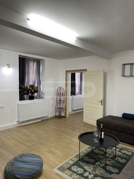 A universal space of 55 square meters is for sale in a Tbilisi yard. It is suitable for both commercial purposes and living. The building is quite solid and is not in an emergency condition.