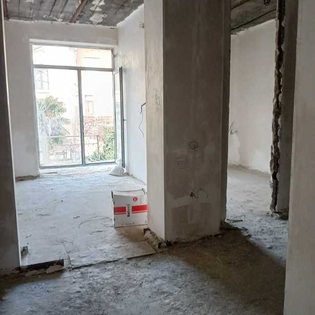 For sale is a 57m2 apartment in a black frame condition, in a newly built building, at the intersection of Tashkent and Lviv streets. Utilities: gas, water, and electricity are brought into the apartment. The building is finished from the outside, interior work is in progress.