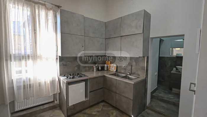 For sale, non-standard, high-ceilinged (5 m), isolated apartment in Sololaki, on Leonidze Street, the balcony overlooks Leonidze. The apartment has the status of a historical monument. It has 2 rooms, renovated, with central heating and has a registered attic of 40 sq.m, the buyer can turn it into living space. Price 145000&
